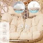 • 【PREMIUM MATERIAL】This Double Hanging Chair employed premium outdoor power coated metal frame and wrapped with all weather resistant PE rattan. The Cushions are filled with PP Cotton and the covers are UV-resistant and Water repellant for outdoor using.