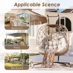 • 【LARGE SIZE】This Oversized Hanging Egg Chair with Stand is for 2 People. The Luxury Double Seats 2 Person Swing Chair Overall Dimensions’ 52.3”L x 38.1”W x 77.1”H ; Basket 50”L x 25.6”W x43.7”H; 510 Lbs Capacity.