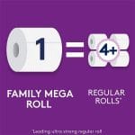 - Contains 24 family mega toilet paper rolls; 325 sheets per roll; 24 mega rolls = 108 regular rolls*