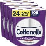 Cottonelle Ultra ComfortCare Cushiony Toilet Paper is soft, 3x thicker, and 3x more absorbent than the leading national value brand*. ComfortCare Cushiony bath tissue is uniquely designed with a soft, cushiony CleaningRipples Texture that removes more at once per sheet with ultimate comfort. This pack contains 24 family mega rolls with 325 sheets per roll. Made with water & renewable, plant-based fibers, it’s biodegradable, clog-safe, septic-safe, and sewer-safe. Cottonelle Ultra ComfortCare toilet tissue is a premium soft, 2-layer bath tissue that contains no harsh ingredients. Pair soft ComfortCare toilet paper with Cottonelle Flushable Wipes for a Refreshing Clean – hypoallergenic and 100% flushable. Cottonelle toilet paper is sourced from responsibly managed forests. Stock up and save by ordering Cottonelle ComfortCare toilet paper in bulk. Packaging may vary from images shown. *Scott 1000 Cottonelle and BLKHLTH partnership: *Colorectal Cancer Alliance and American Cancer Society
