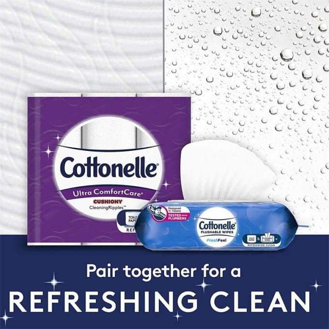 - Pair with Cottonelle Flushable Wipes for a refreshing clean – hypoallergenic and 100% flushable