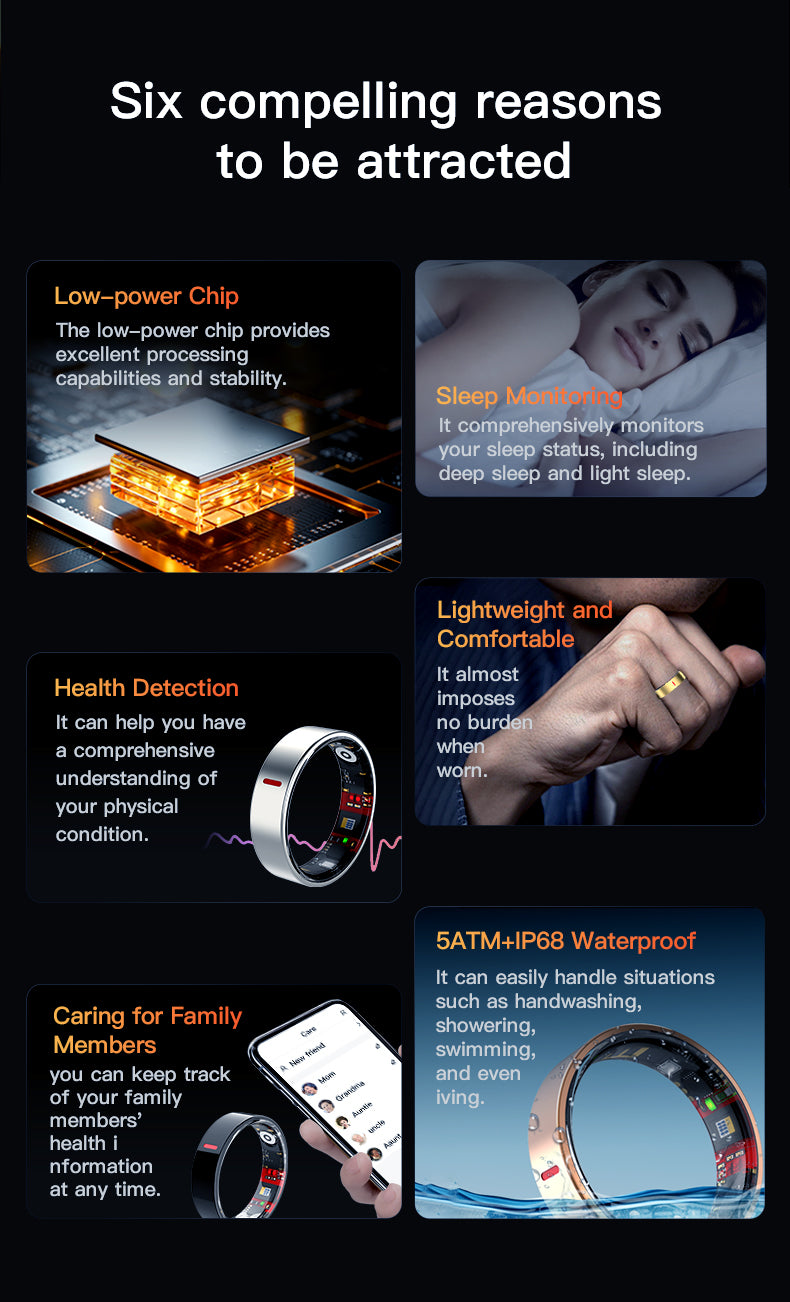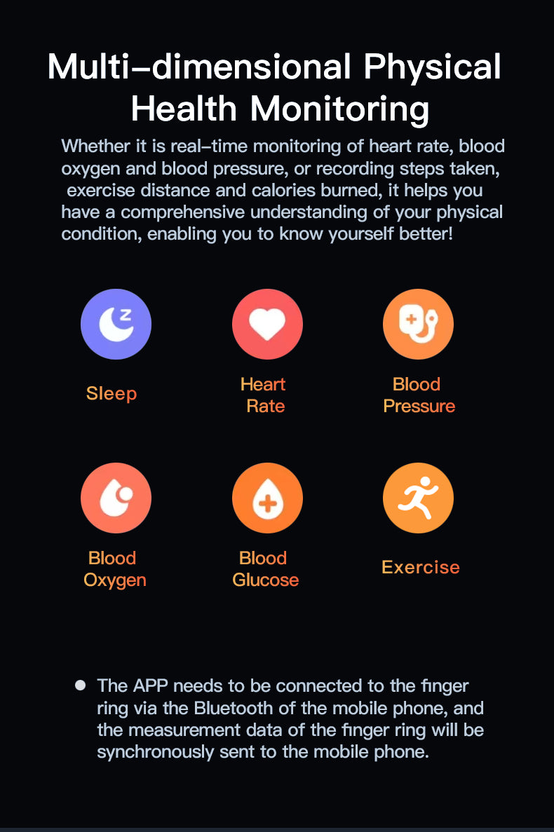 Fitaos R05 Blood Sugar Blood Pressure Blood oxygen HRV Sleep Monitoring Waterproof Smart Ring